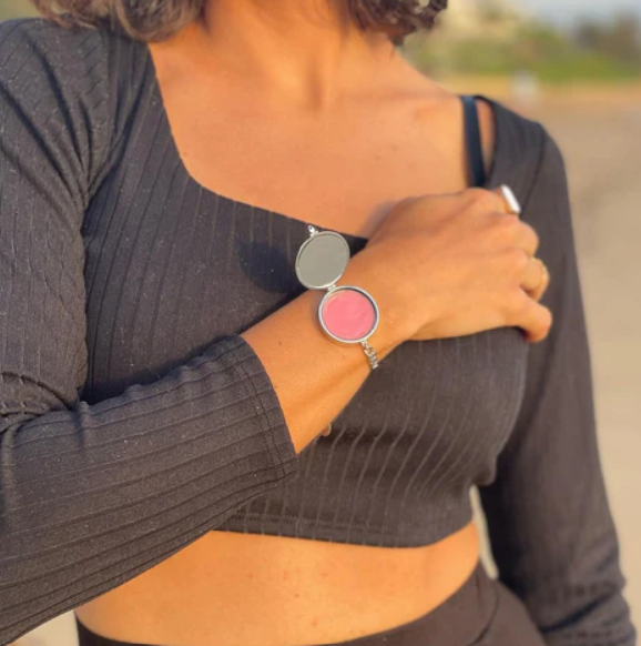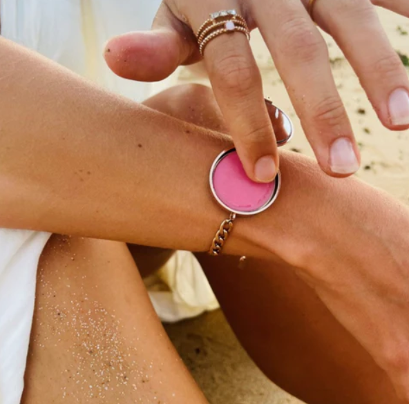 Jag visste inte att jag saknade något så smart! Armbandet håller mitt läppglans nära hela dagen och nu har jag alltid med allt jag behöver. Dessutom har jag satt i en egen berlock i armbandet, så fint! -Emma