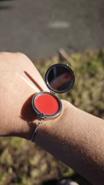 Den integrerade ringen som innehåller läpprodukten har dock en silikonbaserad tätning som skyddar innehållet mot fukt – men för att bevara både funktion och finish bör armbandet hållas torrt.